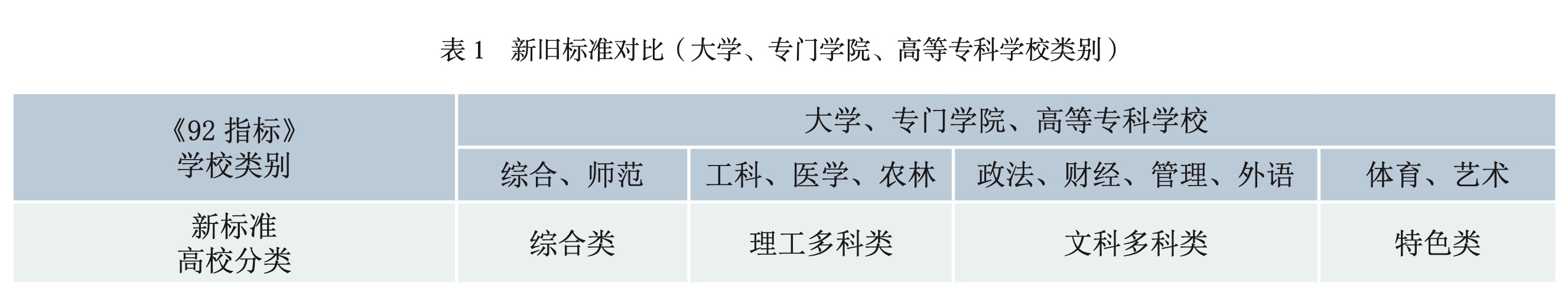 結(jié)合《上海高等教育布局機構(gòu)與發(fā)展規(guī)劃(2015-2030)》的分類要求,新標(biāo)準(zhǔn)將《92指標(biāo)》按三類院校、11個學(xué)科類別(增加了《92指標(biāo)》未涉及的管理類和藝術(shù)類學(xué)校)的分類歸并為綜合類、理工多科類、文科多科類、特色類四大類別,與上海高等教育發(fā)展實際相匹配。