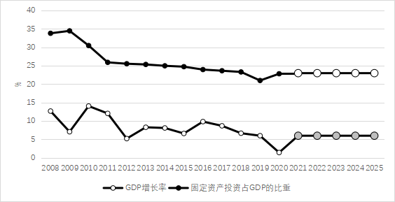 從投資與GDP的關(guān)系來看,上海目前經(jīng)濟(jì)發(fā)展進(jìn)入新常態(tài),GDP年增長率基本在6%-7%的合理區(qū)間內(nèi),2020年因新冠疫情影響而出現(xiàn)短期波動(dòng)。隨著經(jīng)濟(jì)社會(huì)的不斷轉(zhuǎn)型,經(jīng)濟(jì)發(fā)展對投資的依賴性有所下降,近年來固定資產(chǎn)投資占GDP的比重逐年下降至20%-25%。“十四五”時(shí)期是我國全面建成小康社會(huì)、實(shí)現(xiàn)第一個(gè)百年奮斗目標(biāo)之后,乘勢而上開啟全面建設(shè)社會(huì)主義現(xiàn)代化國家新征程、向第二個(gè)百年奮斗目標(biāo)進(jìn)軍的第一個(gè)五年。假設(shè)未來一段時(shí)期內(nèi),上海GDP仍以年均6%左右的速度增長,即“十四五”五年GDP總量將達(dá)到23-24萬億元。同時(shí),考慮到投資在穩(wěn)增長中的重要作用,我們認(rèn)為“十四五”時(shí)期固定資產(chǎn)投資占GDP的比重將維持在23-24%左右,則“十四五”時(shí)期固定資產(chǎn)投資將達(dá)到5.3-5.7萬億元。