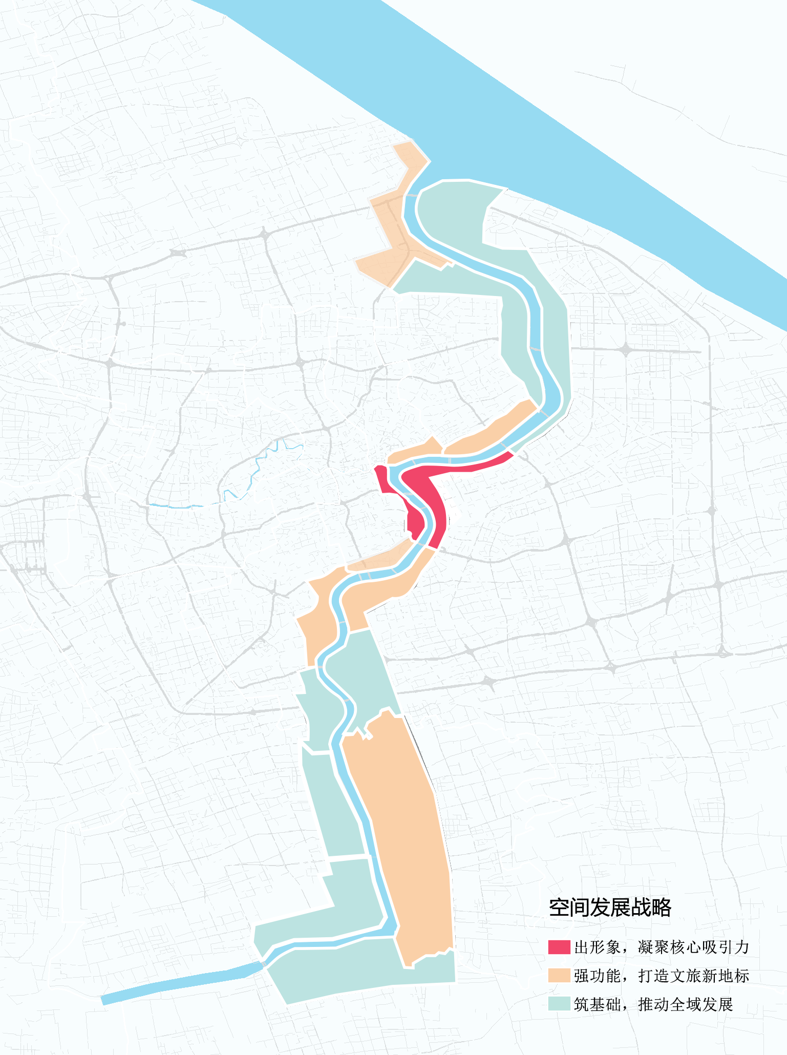 依托蘇州河特有的自然景觀和人文景觀,緊密結合沿河文化和旅游資源、碼頭、配套設施和空間,融入各區(qū)段的文化個性、資源特色、發(fā)展特點,推動優(yōu)質資源的活化利用、多元功能導入、公共景觀空間優(yōu)化,形成差異化的文旅功能布局。