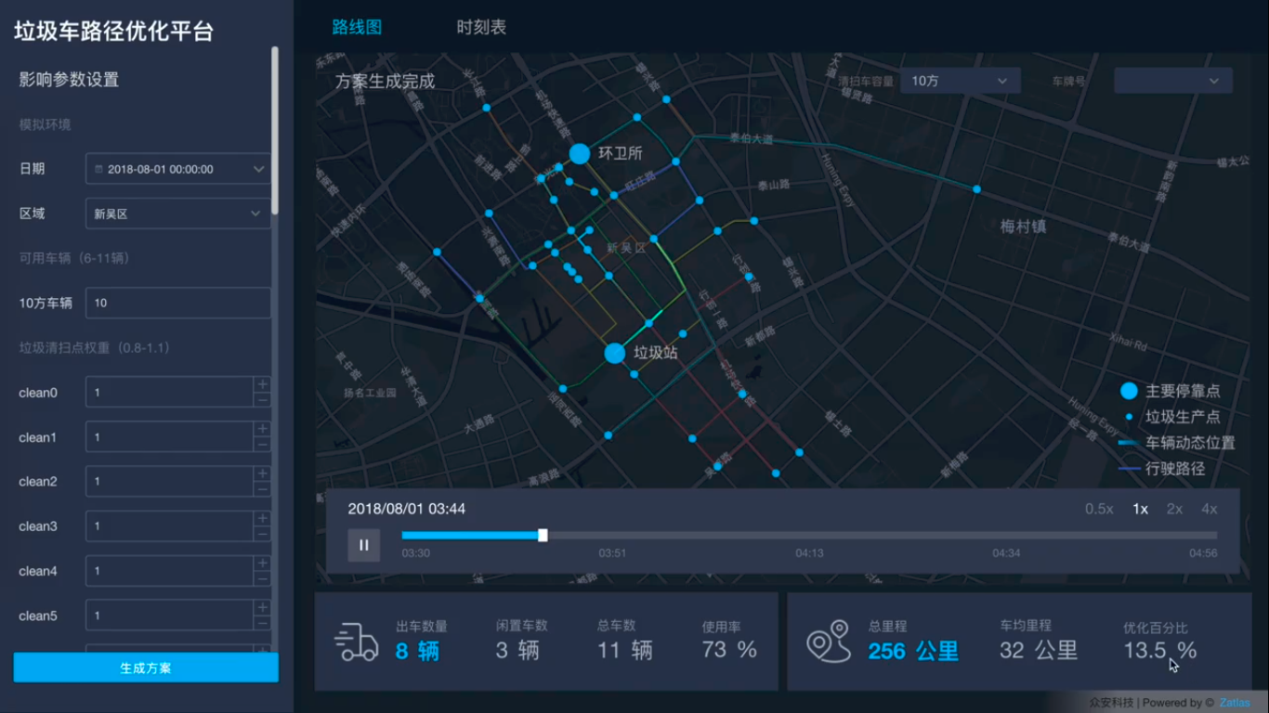 圖4 2018年全球物聯(lián)網(wǎng)數(shù)據(jù)創(chuàng)新大賽金獎(jiǎng)作品——垃圾車(chē)路徑優(yōu)化平臺(tái)