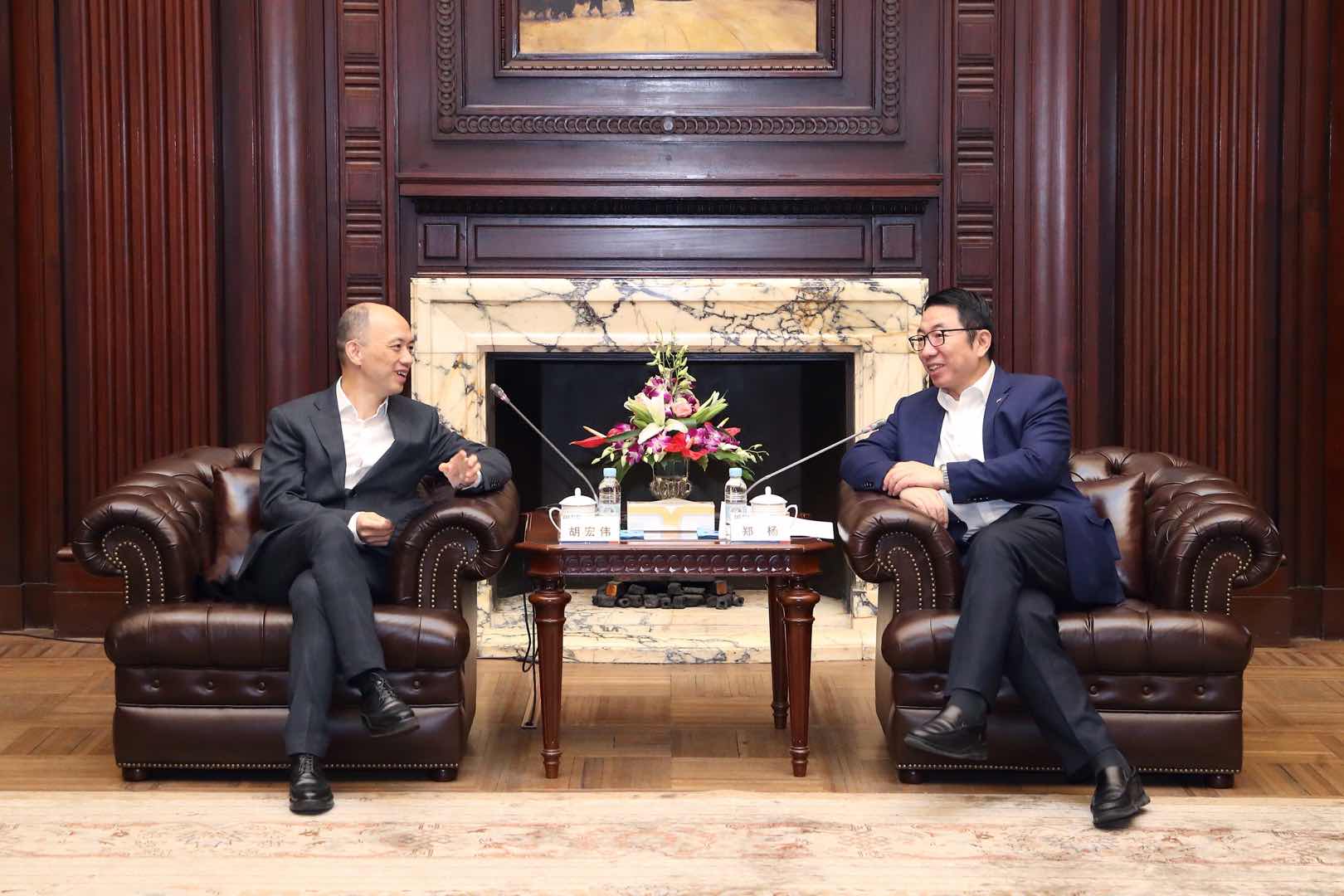 浦東發(fā)展銀行黨委書記、董事長鄭楊與上海投資咨詢公司黨委書記、總經(jīng)理胡宏偉深入交流發(fā)展愿景,重點圍繞數(shù)字化資金管理、長三角和臨港等區(qū)域項目合作、創(chuàng)新型金融工具開發(fā)等內(nèi)容展開會談。