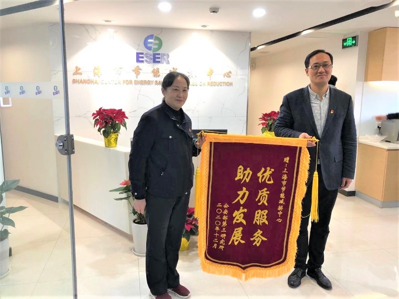 近日,公安部第三研究所陸曙蓉副主任帶隊赴上咨節(jié)能減排中心(以下簡稱中心)贈送“優(yōu)質服務、助力發(fā)展”錦旗和表揚信,感謝中心在全面服務公安部第三研究所爭創(chuàng)“國管局、國家發(fā)展改革委、財政部2019-2020年公共機構能效領跑者榮譽稱號”工作中展現出的高水平業(yè)務能力和全方位服務意識。上咨黨委委員、副總經理王昊同志出席相關活動。