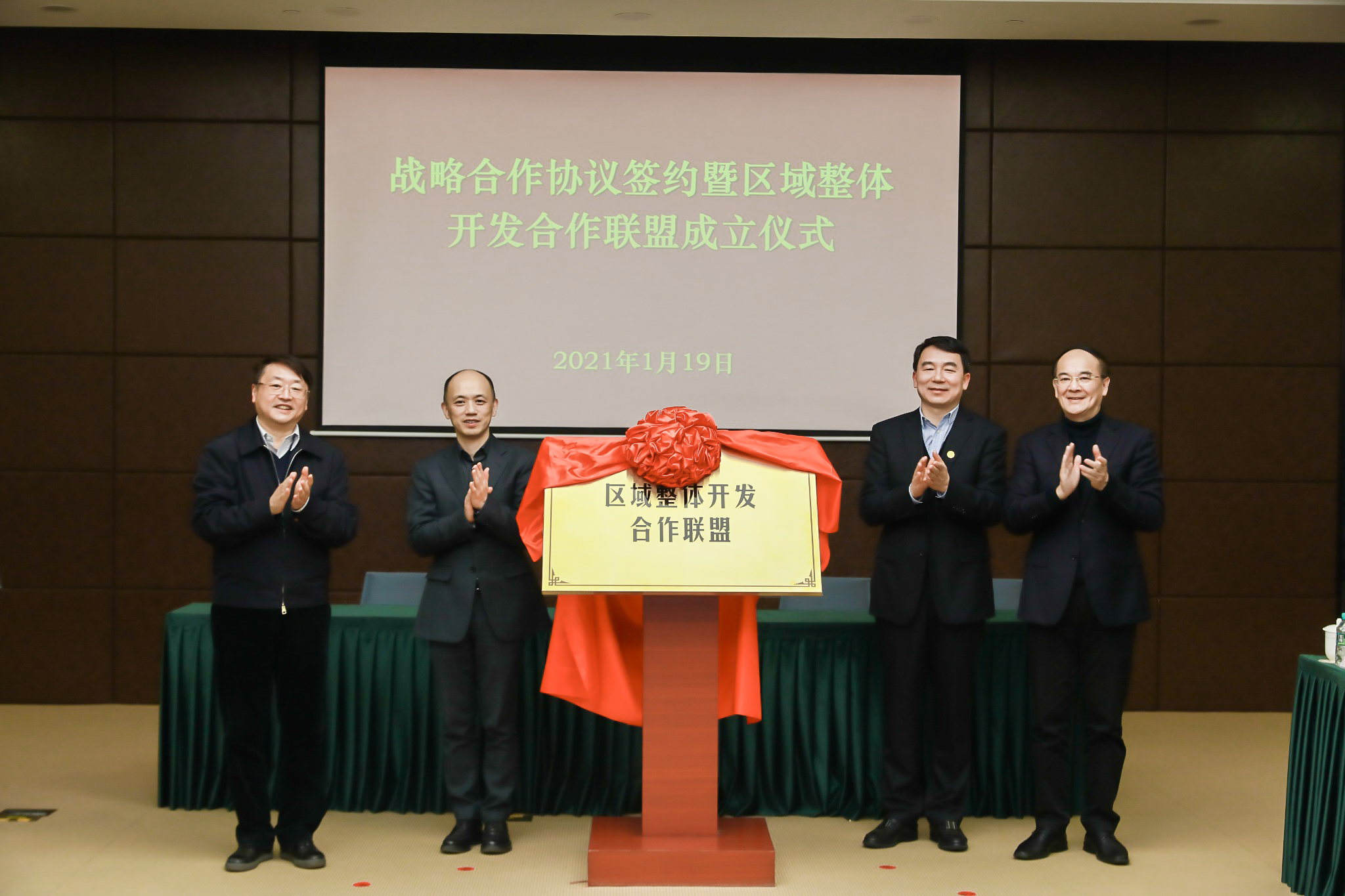 1月19日下午,上咨集團與上海地產(chǎn)集團、華建集團、上海建科集團舉行戰(zhàn)略合作協(xié)議簽約暨區(qū)域整體開發(fā)合作聯(lián)盟成立儀式。上咨集團黨委書記、總經(jīng)理胡宏偉為區(qū)域整體開發(fā)合作聯(lián)盟揭牌并致辭,集團黨委副書記、副總經(jīng)理王驊代表集團與三方簽署戰(zhàn)略合作協(xié)議。
