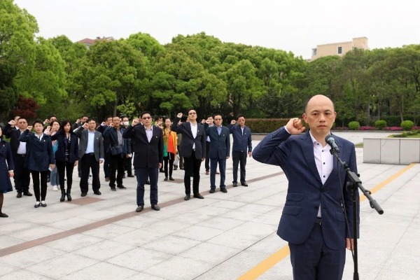 黨員同志們步入莊嚴肅穆的寶山烈士陵園,在革命烈士紀念碑前整齊列隊,在國歌聲中深深鞠躬,并敬獻花籃和花束,向烈士表達崇高敬意和深切追思。立于紀念碑前,同志們還認真聆聽了一堂黨史微課,深入了解紀念碑背后的英雄故事。最后,在場黨員面對鮮紅的黨旗,在胡宏偉同志的領(lǐng)誓下,莊嚴地舉起右手,重溫入黨誓詞,再次感受思想的洗禮和升華。