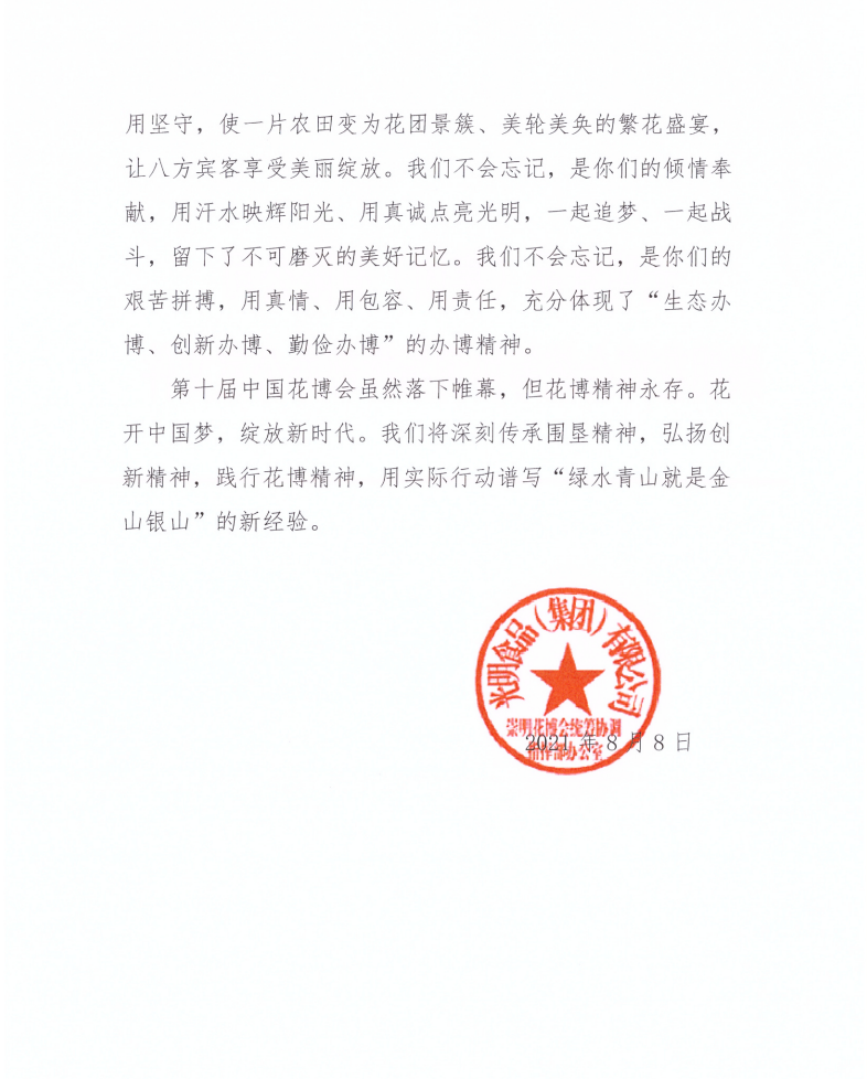 花開中國夢 綻放新時代——上咨集團收到第十屆花博會感謝信