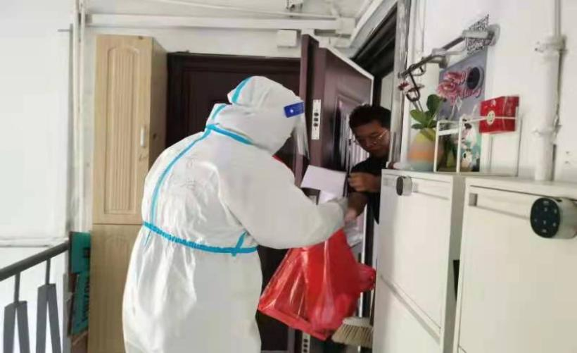他們化身為“大白”和“小藍(lán)”,根據(jù)各自社區(qū)居委的安排部署開展各項志愿服務(wù)工作。他們有的負(fù)責(zé)核酸檢測期間的秩序維持和人流疏導(dǎo),有的負(fù)責(zé)協(xié)助登記掃碼、解答相關(guān)問題,有的負(fù)責(zé)政府補(bǔ)給物資的分配和發(fā)放,有的嚴(yán)格按照“不漏一戶、不落一人”的原則負(fù)責(zé)抗原檢測的掃樓工作……志愿者任務(wù)繁重,需身著密不透風(fēng)的防護(hù)服和密實的口罩,直面眾多居民,既要保證任務(wù)完成,又要保證自身的防疫安全。