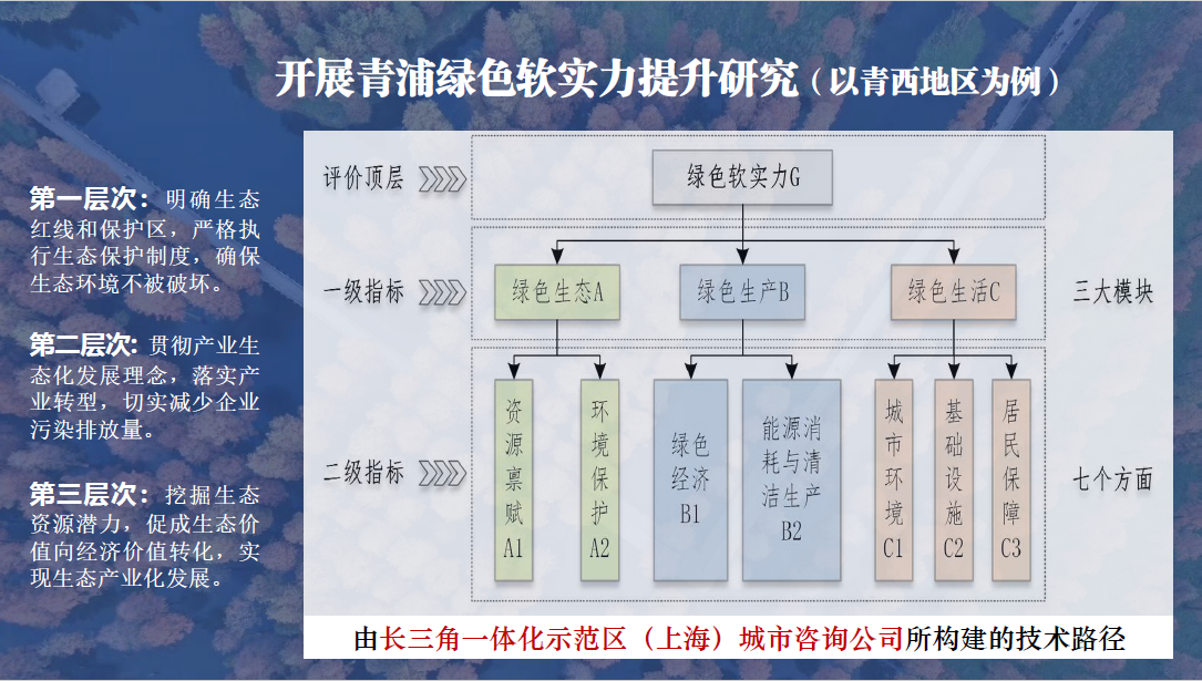 長三角城市咨詢公司通過兩大母集團優(yōu)勢資源導入和服務能力延伸,開展青西三鎮(zhèn)(朱家角鎮(zhèn)、金澤鎮(zhèn)和練塘鎮(zhèn))綠色發(fā)展軟實力轉化提升的實施路徑研究,從生態(tài)產品調查、生態(tài)價值核算、生態(tài)價值轉化、生態(tài)品牌創(chuàng)建、生態(tài)產業(yè)發(fā)展這5個方面全新詮釋了青浦區(qū)綠色軟實力,構建了青浦區(qū)綠色生態(tài)優(yōu)勢轉化技術路徑,成為“促進黃浦江沿江地區(qū)生態(tài)產品價值實現”的生動典范。接下來課題研究將充分發(fā)揮青西三鎮(zhèn)生態(tài)資源優(yōu)勢,借助農文旅商一體化的產品價值實現路徑,破解生態(tài)約束下的軟實力提升困境,樹立青西片區(qū)生態(tài)文旅品牌,探索生態(tài)資源和軟實力的互動機制。