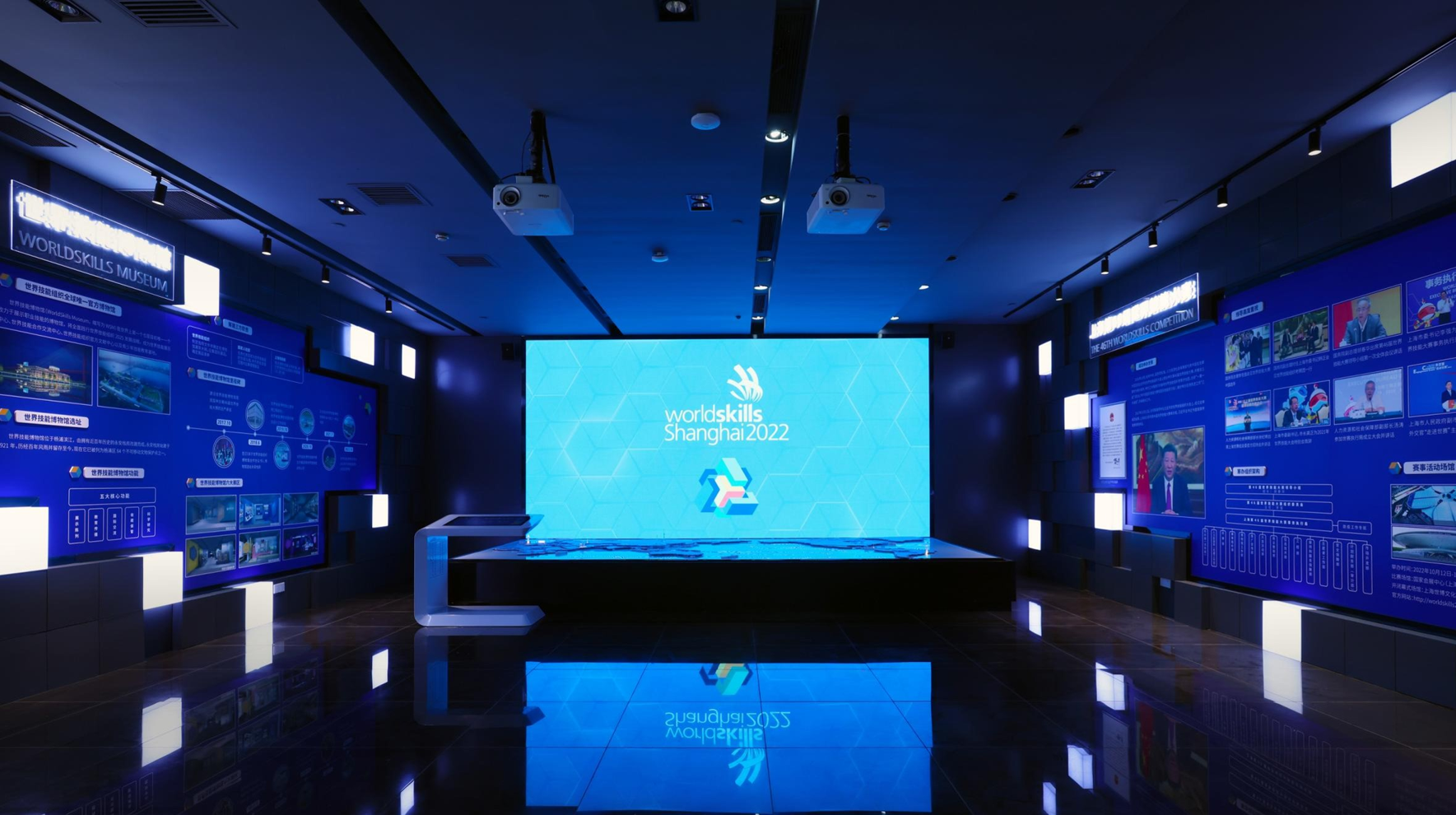 2022年3月,上咨為世賽執(zhí)行局提供了展廳的整體設(shè)計(jì)、施工、運(yùn)維保障等全過程服務(wù),設(shè)計(jì)將綠色可持續(xù)與科技感兩大元素與世賽主題相結(jié)合,打造出全新的多媒體展廳。展廳除了介紹上海第46屆世界技能大賽和世界技能博物館兩大板塊內(nèi)容,最值得一提的是采用了電動(dòng)玻璃屏和互動(dòng)沙盤的多方位體驗(yàn)多媒體互動(dòng)展示,通電玻璃幕墻打開露出展廳全貌的那一剎那,驚艷全場(chǎng)。