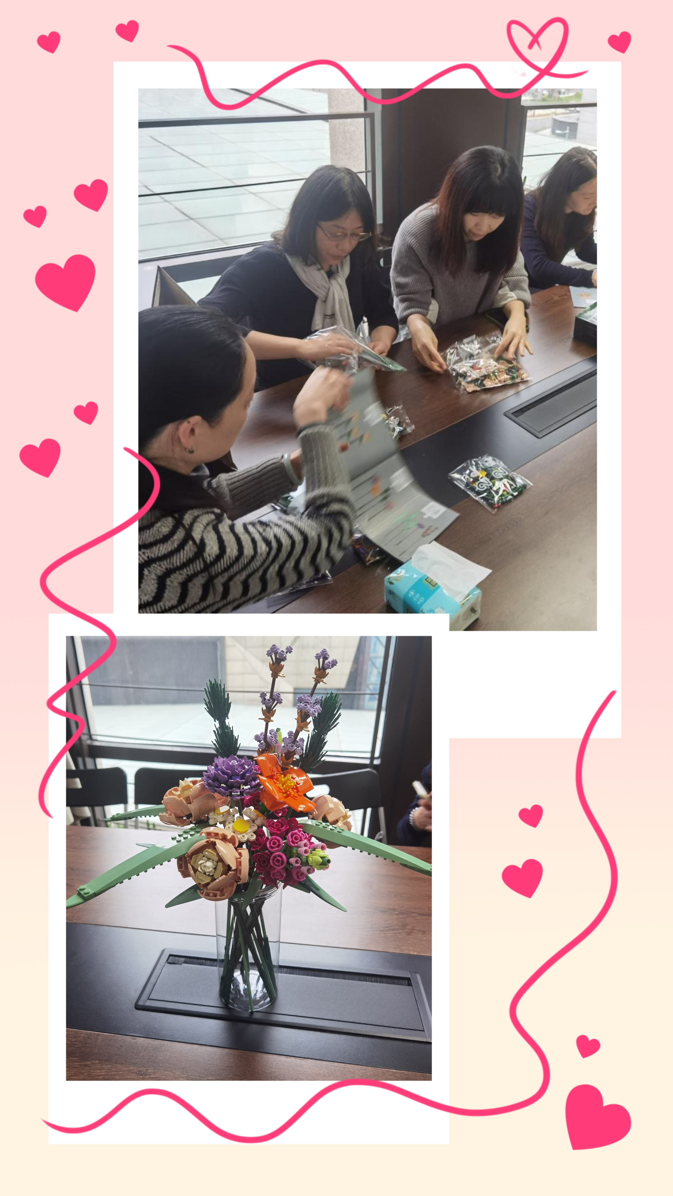 上咨市場(chǎng)公司工會(huì)組織女職工舉辦了樂(lè)高積木花卉拼搭及聚餐活動(dòng)。拼搭積木不僅能夠放松心情,也有助于提高多向思維能力,更展現(xiàn)了職工之間的團(tuán)結(jié)與協(xié)作精神。