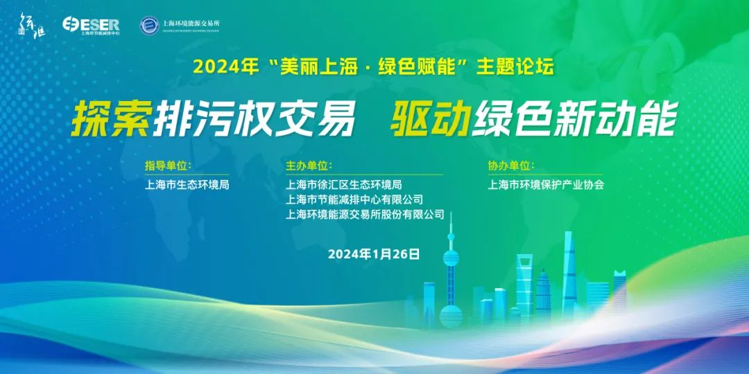 2024年1月26日,“美麗上海 綠色賦能” 主題論壇在上海徐匯正式開幕。本次論壇由上海市生態(tài)環(huán)境局指導,上海市徐匯區(qū)生態(tài)環(huán)境局、上海市節(jié)能減排中心有限公司(以下簡稱“市節(jié)能減排中心”)以及上海環(huán)境能源交易所股份有限公司共同主辦,上海市環(huán)境保護產(chǎn)業(yè)協(xié)會協(xié)辦。