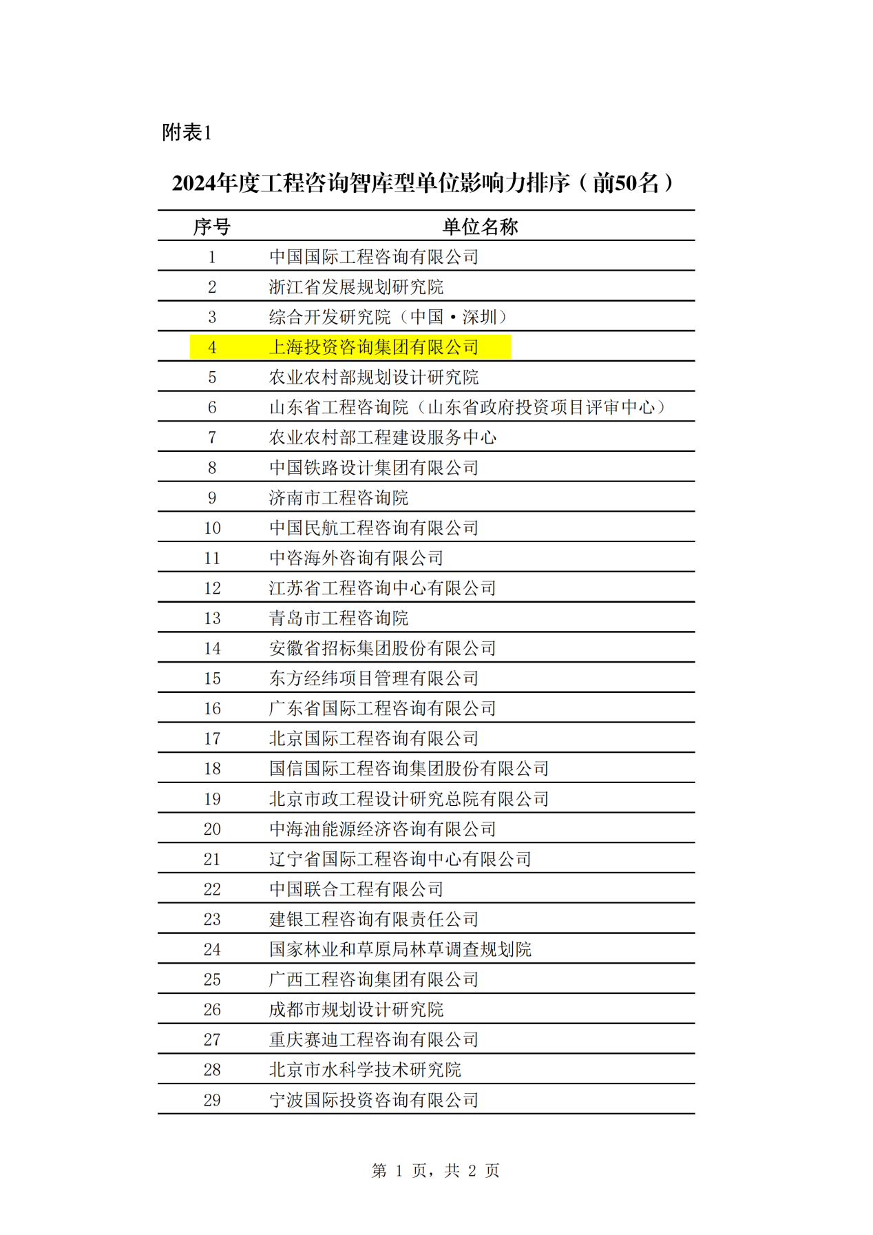 8月19日,中國(guó)工程咨詢協(xié)會(huì)發(fā)布《關(guān)于2024年度工程咨詢單位排序的公告》。憑借深耕多年來(lái)深耕于咨詢服務(wù)領(lǐng)域的豐厚經(jīng)驗(yàn)、雄厚的跨領(lǐng)域?qū)<屹Y源以及高質(zhì)量的服務(wù)水準(zhǔn),上咨公司再次入選“工程咨詢智庫(kù)型單位影響力50強(qiáng)”“工程咨詢單位營(yíng)業(yè)收入100強(qiáng)(中型單位)”,并在“工程咨詢智庫(kù)型單位影響力50強(qiáng)”中由第7名上升至第4名,在“工程咨詢單位營(yíng)業(yè)收入100強(qiáng)(中型單位)”中由第6名上升至第4名。