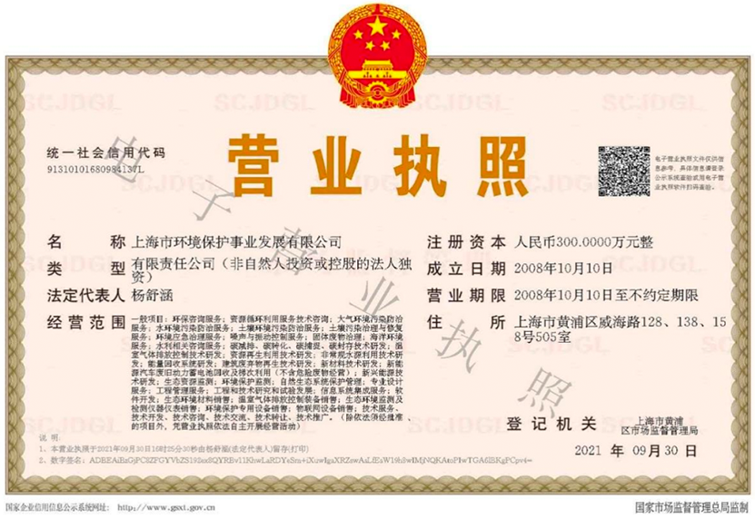 1.企業(yè)名稱:上海市環(huán)境保護(hù)事業(yè)發(fā)展有限公司